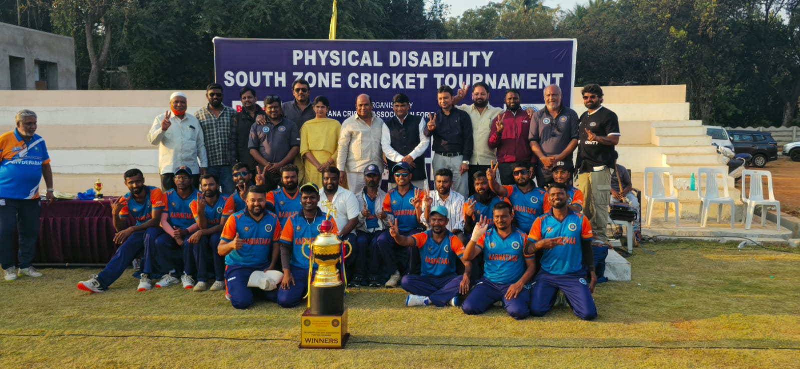 Karnataka emerged as the champions of the South Zone Physical Disability T20 Tournament 2025, delivering a composed and confident five-wicket victory over Hyderabad in the grand final held at the NFCL Cricket Ground, ECIL, Hyderabad.